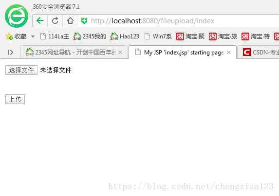 <body> <form id="uploadForm" enctype="multipart/form-data" method="post"> <input type="file" name="file"> </form> <br> <input type="button" id="upload" value="上传"> </body> <script src="https://cdn.bootcss.com/jquery/1.10.2/jquery.min.js"></script> <script type="text/javascript"> $(function() { $('#upload').click(function() { var formData = new FormData($('#uploadForm')[0]); $.ajax({ type : 'POST', url : 'upload', data : formData, cache : false, processData : false, contentType : false, }).success(function(data) { var result = JSON.parse(data); alert(result.back); }).error(function() { alert("上传失败"); }); }); }); </script>