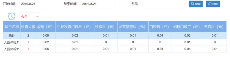function toList(begin,end,name){ console.log(begin); console.log(end); $.ajax({ url: basePath + "/biz/hospital/rate/allot/list.do", data: { begin:begin, end:end, name:name }, type : 'post', dataType : 'json', success : function(data) { var arrayPrice = new Array(); for(var i=0;i<data.length;i++){ var arrayPrice1 = new Array(); for(var key in data[i]){ if(key!="name"&&key!="productId_"&&key!="renshu"&&key!="total"){ arrayPrice1[key]=data[i][key]; } } arrayPrice.push(arrayPrice1); } var title=""; var sumCols=""; var partCols=new Array(); for(var i=0;i<arrayPrice.length;i++){ var partColsStr = ""; for(var key in arrayPrice[i]){ if(i==0&&(arrayPrice[arrayPrice.length-1][key]!=0)){ title+="<th class='firstTh'>"+key+"(元)</th>"; } if(i==(arrayPrice.length-1)&&(arrayPrice[arrayPrice.length-1][key]!=0)){ sumCols+="<td class='secondTd'>"+arrayPrice[i][key]+"</td>"; } if(i!=(arrayPrice.length-1)&&(arrayPrice[arrayPrice.length-1][key]!=0)){ partColsStr += "<td class='thirdTd'>"+arrayPrice[i][key]+"</td>"; } } partCols.push(partColsStr); } var sRenshu = 0; var stotal = 0; var tablex = ""; tablex += "<tr class='firstTr'><th class='firstTh'>项目名称</th><th class='firstTh'>检查人数</th><th class='firstTh'>金额(元)</th>"+title+"</tr>"; if(data!=null && data.length>0){ for(var i=0;i<data.length-1;i++){ sRenshu+=data[i].renshu; stotal+=data[i].total; } tablex += "<tr class='secondTr'><td class='secondTd'>总计</td><td class='secondTd'>"+sRenshu+"</td><td class='secondTd'>"+stotal+"</td>"+sumCols+"</tr>"; for(var i=0;i<data.length-1;i++){ { tablex += "<tr class='thirdTr'><td class='thirdTd'>"+data[i].name+"</td>" + "<td class='thirdTd'>" + "<a style='color:#ff5722' href="+basePath +" /biz/hospital/rate/allot/toPageMx.do?startDate="+$("#startDate").val().toString() +"&endDate="+$("#endDate").val().toString() +"&productId_="+data[i].productId_+">"+ data[i].renshu+"</a></td>" + "<td class='thirdTd'>"+data[i].total+ partCols[i] + "</tr>"; } } } $("#table_status").empty(); $("#table_status").append(tablex); }, error : function() { layer.msg('系统异常,请联系管理员!',{icon:2,time:2000}); } }); }