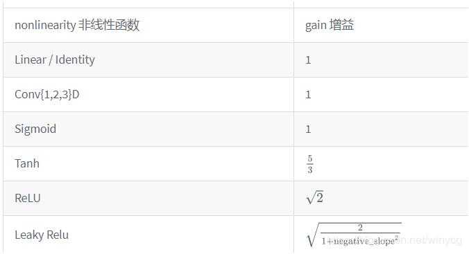 torch.nn.init.calculate_gain(nonlinearity, param=None)