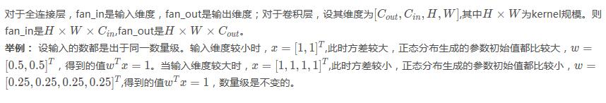 pass.默认为fan_in模式,fan_in可以保持前向传播的权重方差的数量级,fan_out可以保持反向传播的权重方差的数量级。