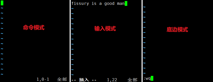 此时我们就进入了命令模式,此状态下无法输入,可以为vim传递命令,a或i切换到输入模式