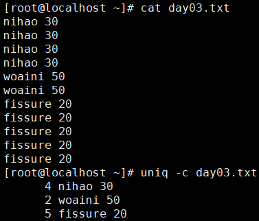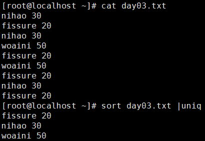 当重复的行不相邻时,uniq是不起作用的,于是需要配合sort来使用去除重复的行