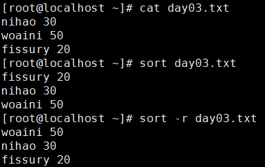 sort -b #忽略每行开始的空格字符 sort -c #检查文件是否按照顺序排序 sort -f #将小写字母视为大写字母 sort -o 输出文件 #将结果存入指定文件 sort -r #以相反顺序排序 sort -n #按照数值大小排序 sort -t分隔符 #指定分隔符