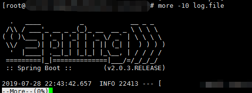 如果说希望查看的日志文件过大,那么可以通过使用more命令来进行分页查找,例如说设定每一页展示10条数据信息: