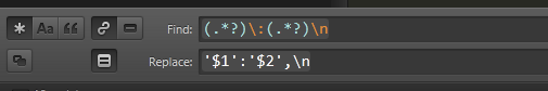 用正则表达式替换后的如下:(正则替换后再手动去掉最后一行最后一个逗号)