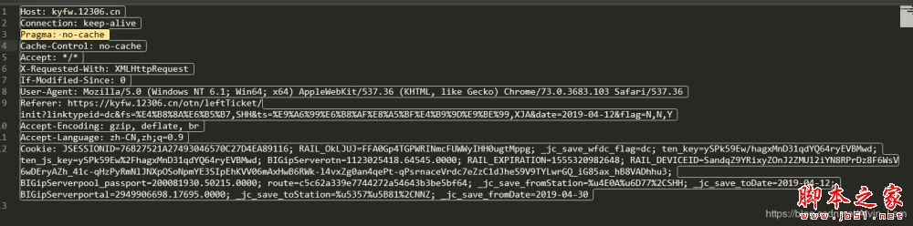 'Host':' kyfw.12306.cn', 'Connection':' keep-alive', 'Pragma':' no-cache', 'Cache-Control':' no-cache', 'Accept':' */*', 'X-Requested-With':' XMLHttpRequest', 'If-Modified-Since':' 0', 'User-Agent':' Mozilla/5.0 (Windows NT 6.1; Win64; x64) AppleWebKit/537.36 (KHTML, like Gecko) Chrome/73.0.3683.103 Safari/537.36', 'Referer':' https://kyfw.12306.cn/otn/leftTicket/init?linktypeid=dc&fs=%E4%B8%8A%E6%B5%B7,SHH&ts=%E9%A6%99%E6%B8%AF%E8%A5%BF%E4%B9%9D%E9%BE%99,XJA&date=2019-04-12&flag=N,N,Y', 'Accept-Encoding':' gzip, deflate, br', 'Accept-Language':' zh-CN,zh;q=0.9', 'Cookie':' JSESSIONID=76B27521A27493046570C27D4EA89116; RAIL_OkLJUJ=FFA0Gp4TGPWRINmcFUWWyIHH0ugtMppg; _jc_save_wfdc_flag=dc; ten_key=ySPk59Ew/hagxMnD31qdYQ64ryEVBMwd; ten_js_key=ySPk59Ew%2FhagxMnD31qdYQ64ryEVBMwd; BIGipServerotn=1123025418.64545.0000; RAIL_EXPIRATION=1555320982648; RAIL_DEVICEID=SandqZ9YRixyZOnJ2ZMUl2iYN8RPrDz8F6WsV6wDEryAZh_41c-qHzPyRmNlJNXpOSoNpmYE3SIpEhKVV06mAxHwB6RWk-l4vxZg0an4qePt-qPsrnaceVrdc7eZzC1dJheS9V9TYLwrGQ_iG85ax_hB8VADhhu3; BIGipServerpool_passport=200081930.50215.0000; route=c5c62a339e7744272a54643b3be5bf64; _jc_save_fromStation=%u4E0A%u6D77%2CSHH; _jc_save_toDate=2019-04-12; BIGipServerportal=2949906698.17695.0000; _jc_save_toStation=%u5357%u5B81%2CNNZ; _jc_save_fromDate=2019-04-30'