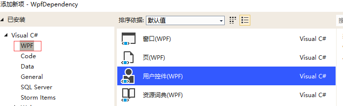 首先我们添加新项,然后选择用户控件。