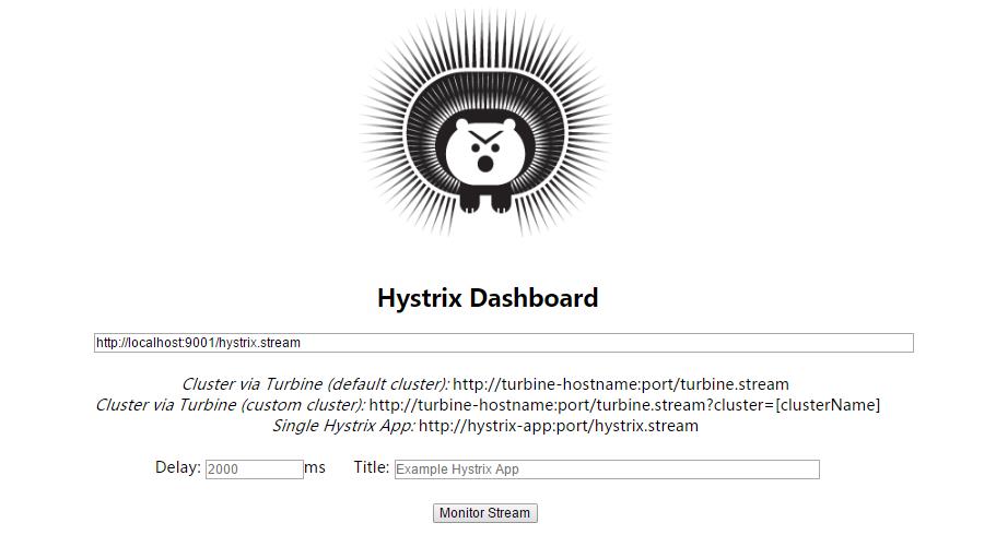 启动工程后访问 http://localhost:9001/hystrix,将会看到如下界面: