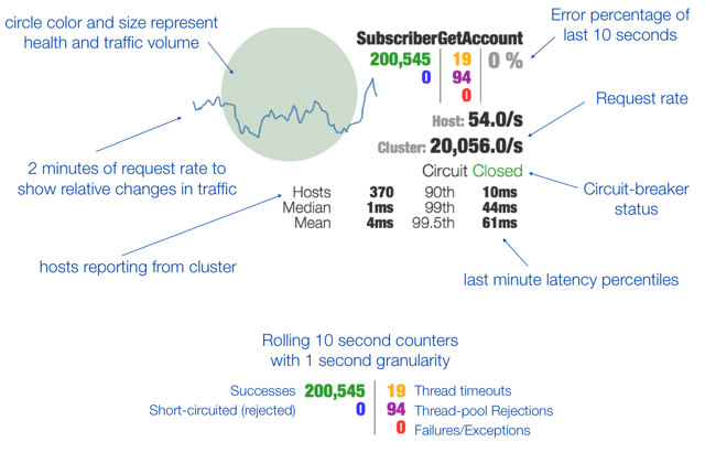 其实就是http://localhost:9001/hystrix.stream返回结果的图形化显示,Hystrix Dashboard Wiki上详细说明了图上每个指标的含义,如下图: