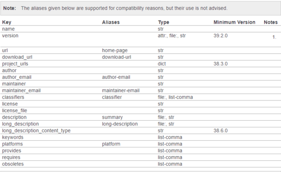 上面的 setup.py 安装文件内,我们已经使用了 setup() 一些参数:name, version, packages。 version 项目版本号,一般由三部分组成:MAJOR, MINOR, MAINTENANCE。