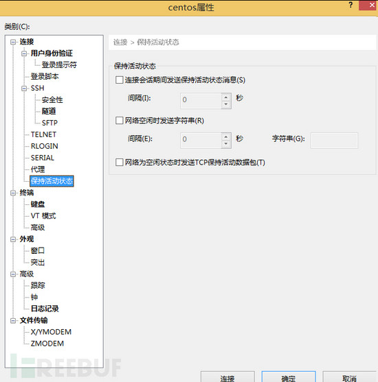我自己测试过,将ClientAliveInterval设置为60,ClientAliveCountMax设置1,然后我一直不操作,同时我把xshell里保持活动状态的选项关掉: