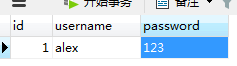 ,以下截图是我们事先保存到数据库中的username和password