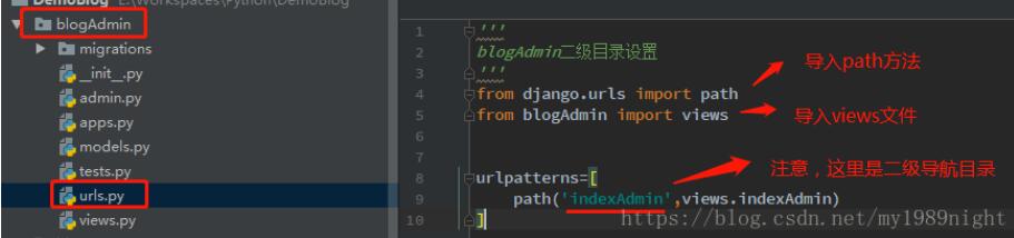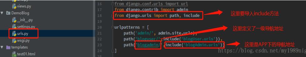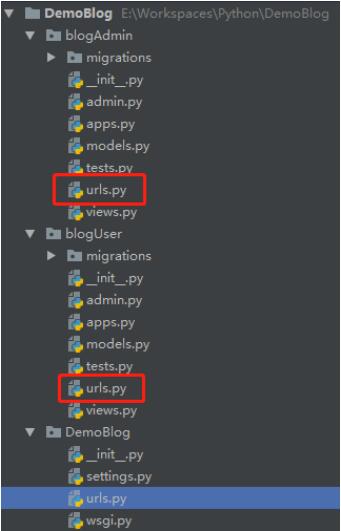 1.分别在blogAdmin和blogUser两个APP下,分别建立url.py文件