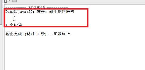 首先,以下面的程序为例,会看到在控制台有:错误:缺少返回语句的提示。