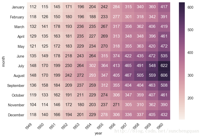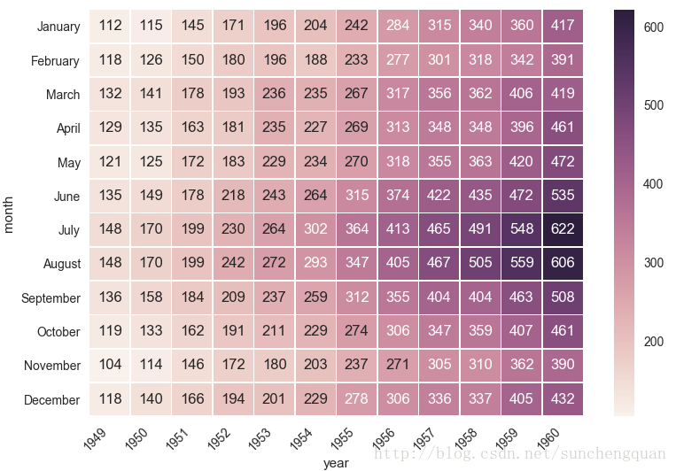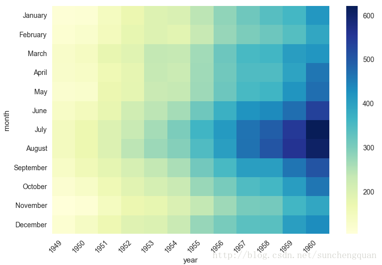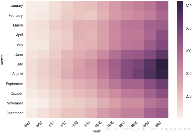 # 绘制x-y-z的热力图,比如 年-月-销量 的热力图