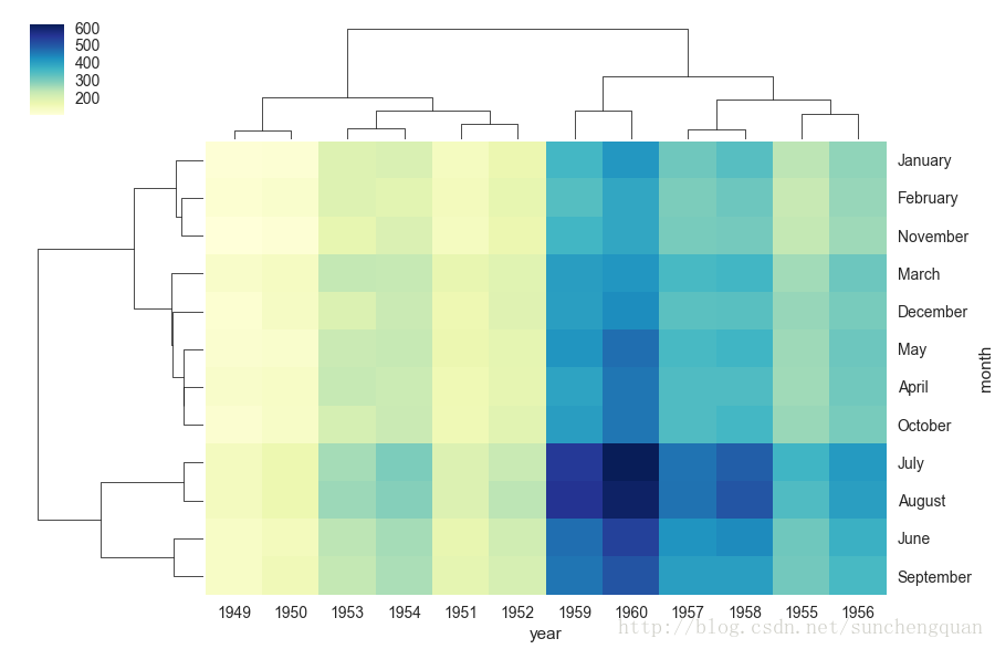 # 绘制x-y-z的热力图,比如 年-月-销量 的聚类热图