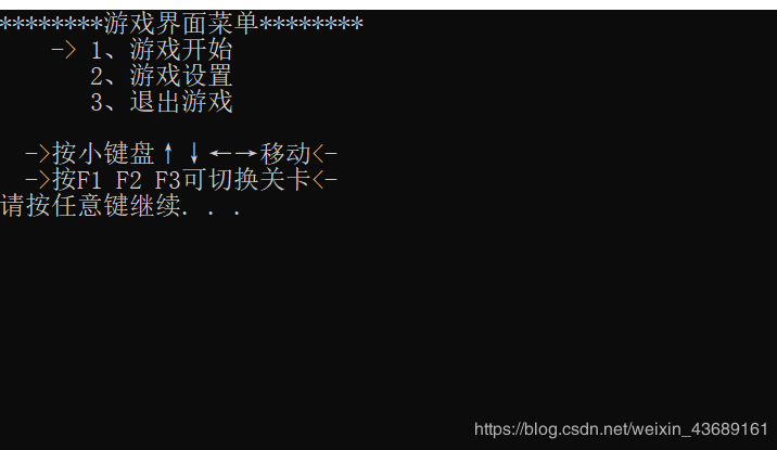cout << " ->按F1 F2 F3可切换关卡<- " << endl;