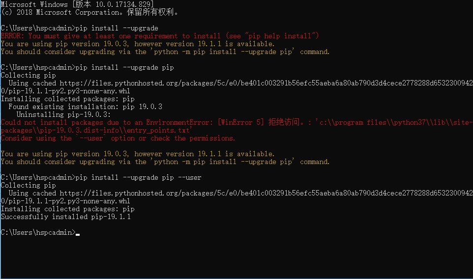 python3.7 pip升级 拒绝访问 解决方案