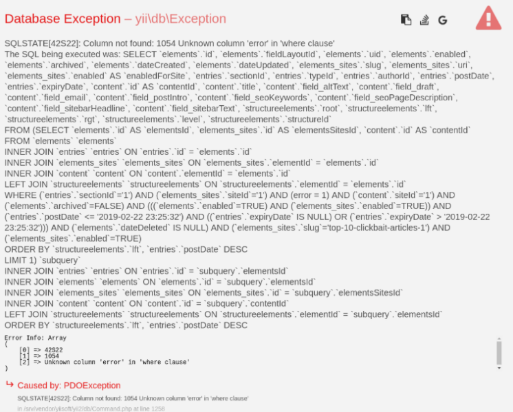 如果你不小心,可能会在生产环境中因为不正确的错误报告泄露了敏感信息,例如:文件夹结构、数据库结构、连接信息与用户信息。