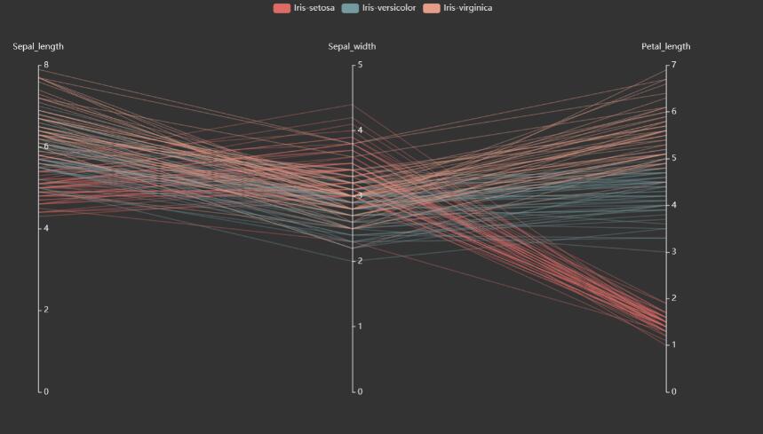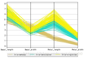 上图是一个基于iris数据集所画的一个平行坐标图。