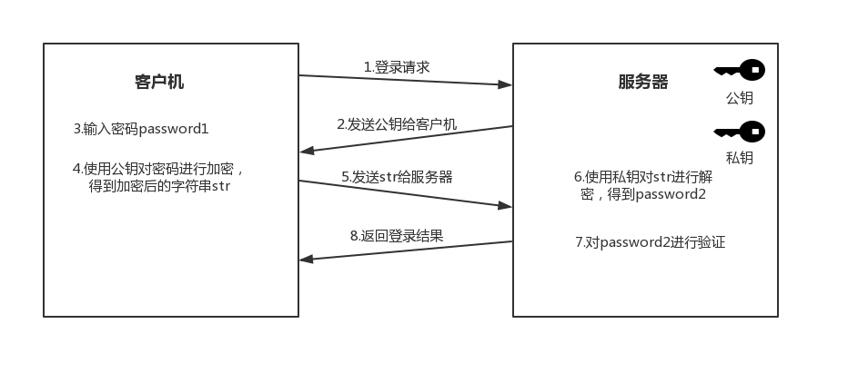 由于私钥是服务器独有的,所以即使客户机的登录信息被截取,也是没有私钥进行解密的,保证了数据的安全性,充分利用了非对称加密的特点。
