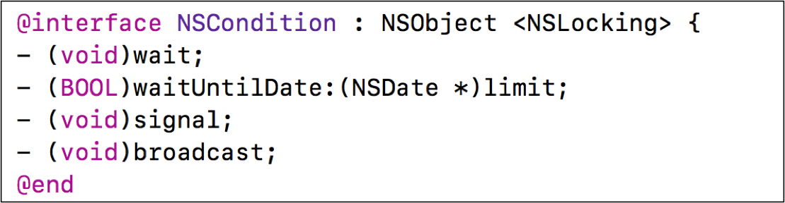 NSConditionLock是对NSCondition的进一步封装,可以设置具体的条件值