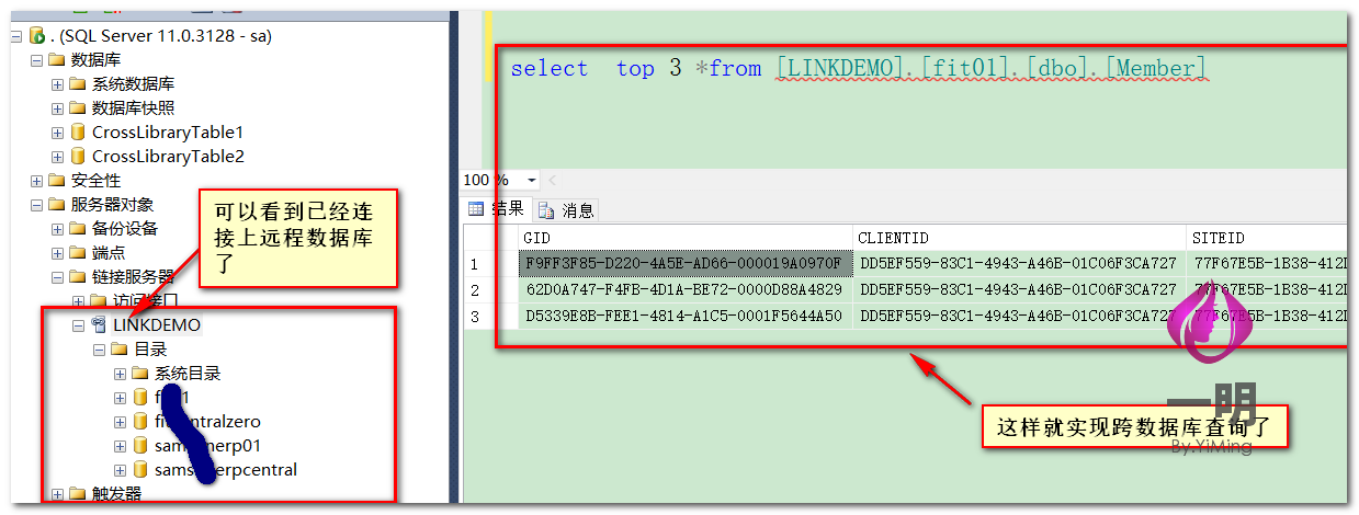 好了,SQL Server跨库跨服务器访问实现就到这了,如果按照步骤一步一步操作的话,相信您也已经实现了,下一篇文章就来谈谈分库分表实现。
