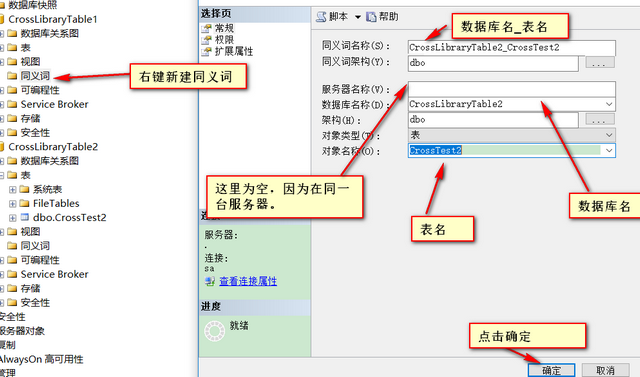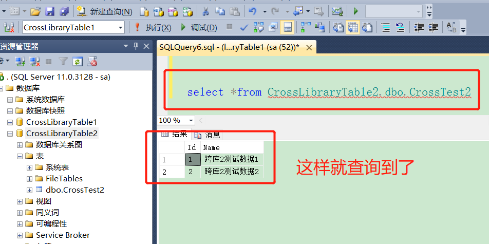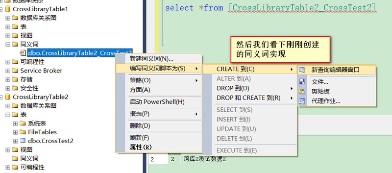1. 首先创建两个数据库CrossLibraryTable1,CrossLibraryTable2