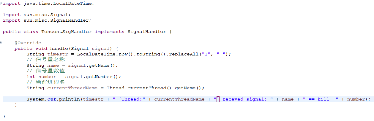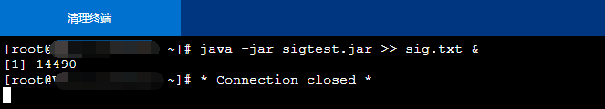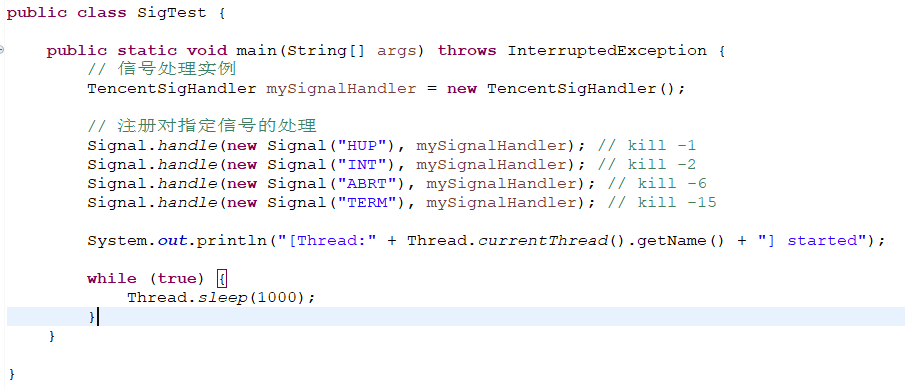 那么WEB控制台会话断开,会发出什么信号量呢?我们来试试就知道了。Java虽然说不能操作系统底层,但是sun.misc包有惊喜哦。代码如下。
