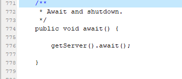 tomcat启动时,设置await,等待关闭指令进入。org\apache\catalina\startup\Bootstrap.java