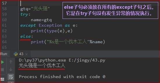 else子句是可选的,如果使用,必须放在所有的except子句之后。