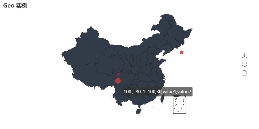 三是如果你的数据在地图中并没有坐标城市,可以通过geo_cities_coords 自己进行添加,GeoLine图同样如此