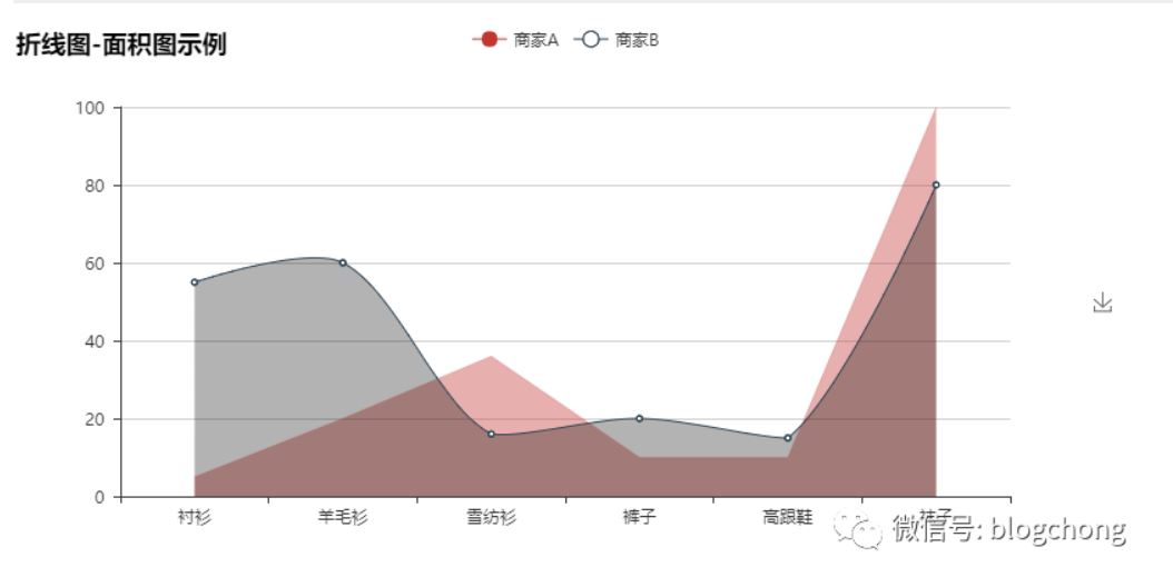 line.add("商家B", attr, v2, is_fill=True, area_color='#000', area_opacity=0.3, is_smooth=True)