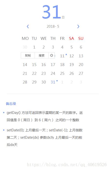 用vue写了个日历备忘录的功能,省略了备忘录的增删改查功能。