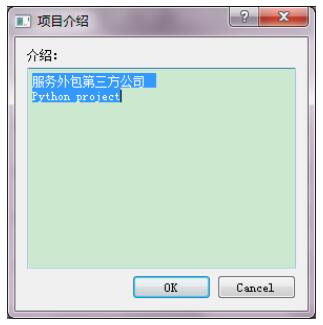 introduction,ok = QInputDialog.getMultiLineText(self,"项目介绍","介绍:","服务外包第三方公司 \nPython project")