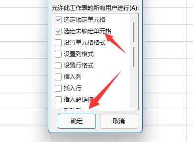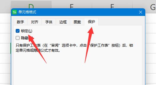2、接着进入“保护”选项,勾选“锁定”并“确定”保存。