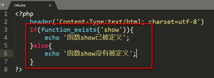 使用 function_exists() 函数判断 show() 函数是否已经被定义,代码如图所示: