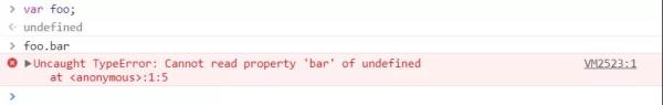 当我们尝试访问一个未定义的变量时,它总是返回 undefined,我们不能获取或设置任何未定义的属性。 在这种情况下会将抛出 “Uncaught TypeError: Cannot set property”。
