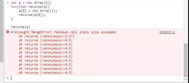 当你调用一个不终止的递归函数就会发生这种错误。您可以在 Chrome 开发者控制台中进行测试。