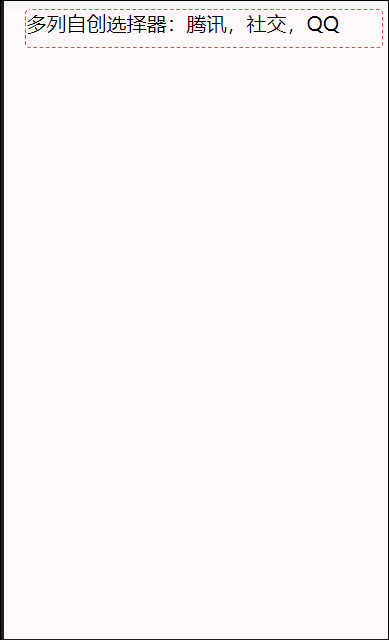 <picker mode="multiSelector" bindchange="bindCustomPickerChange" bindcolumnchange="bindCustomPickerColumnChange" value="{{customIndex}}" range="{{onlyArray}}" > <view> 多列自创选择器:{{onlyArray[0][customIndex[0]]}},{{onlyArray[1][customIndex[1]]}},{{onlyArray[2][customIndex[2]]}} </view> </picker>
