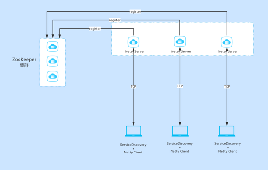 客户端在和服务端建立连接之前,通过查询注册中心的方式来获取服务端的地址。如果存在有多个 Netty 服务端的话,可以做服务的负载均衡。在我们的项目中只采用了简单的随机法进行负载。