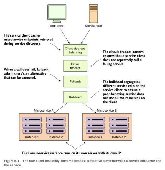 客户端弹性模式是在远程服务发生错误或表现不佳时保护远程资源(另一个微服务调用或者数据库查询)免于崩溃。这些模式的目标是为了能让客户端“快速失败”,不消耗诸如数据库连接、线程池之类的资源,还可以避免远程服务的问题向客户端的消费者进行传播,引发“雪崩”效应。spring cloud Feign主要使用的有四种客户端弹性模式: