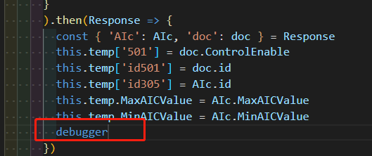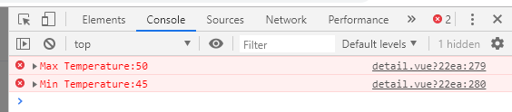 在代码中添加console.log()方法,这里例子输出从数据库读回来的最高最低温,详见如下:
