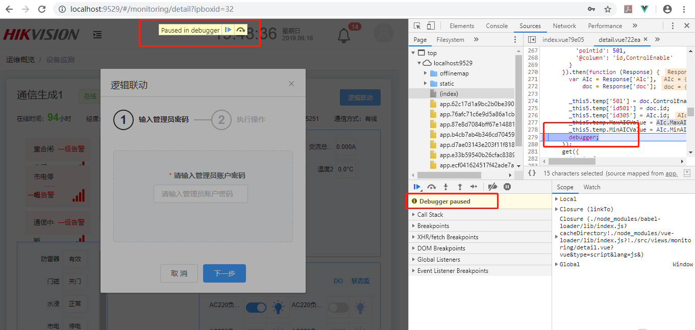 则运行代码之后,代码会自动跳到断点,停止运行如下