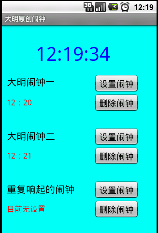 设置重复想起闹钟后的界面: