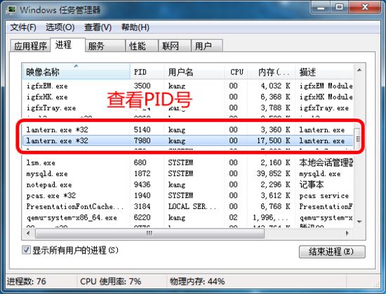 2.命令行窗口查看 在命令行窗口查看时,可以先查看软件的PID,再通过PID查看端口号: