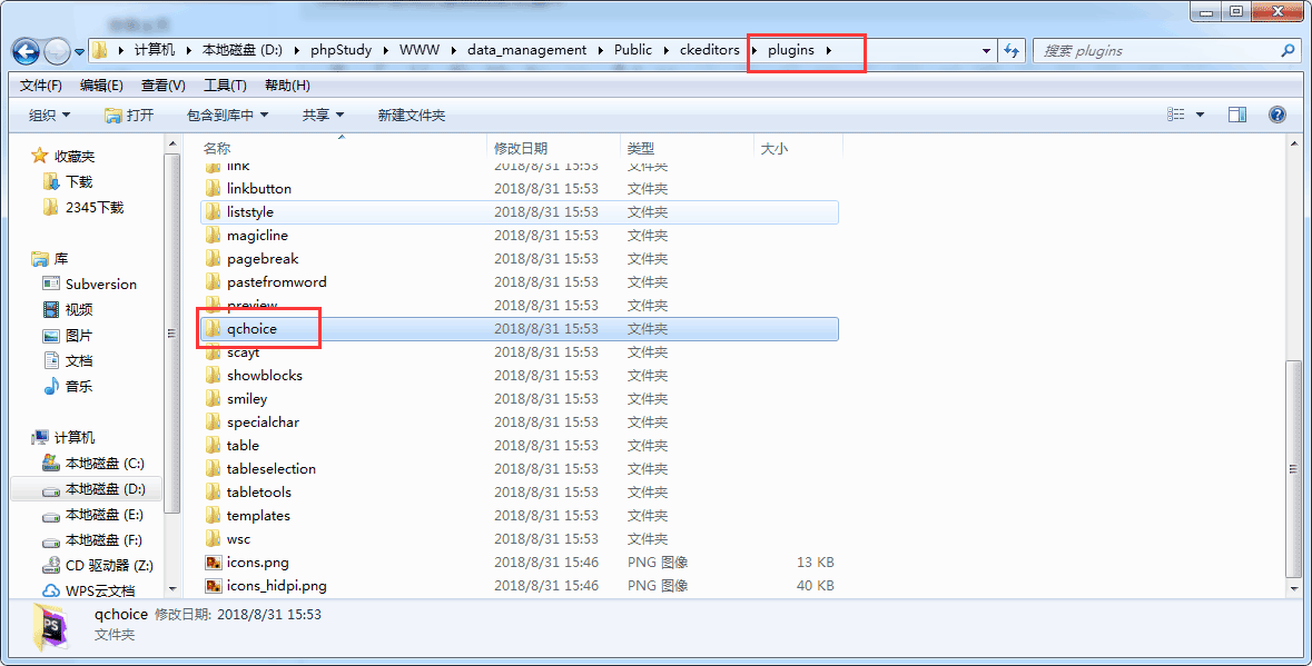 首先就是在CKeditor的plugins目录下新建一个目录qchoice: