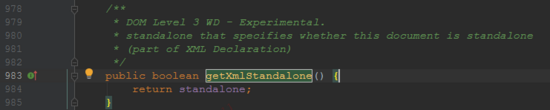 我们在 CoreDocumentImpl 类中第983行发现了 getXmlStandalone 方法。