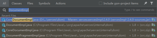 我们在 IDEA 中双击 Shift 键,输入 DocumentImpl,得到如下结果: